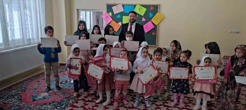 Hakkari İl Müftülüğü 2021-2022 eğitim öğretim yılının ara tatili dönemine girilmesi nedeniyle 4-6 yaş grubu Kur’an kursu öğrencilerine yönelik karne etkinliği düzenledi. Merkez Dörtyol Camii Kur’an Kursunda düzenlenen etkinliğe İl Müftüsü İsmail Fakirullahoğlu, müftülük büro personelleri, kurs öğreticileri ile öğrenci ve velileri katıldı. Kur’an-ı Kerim tilaveti ile başlayan program, miniklerin ilahi ve şiir dinletisinin ardından dönem boyunca yapılan faaliyetleri konu alan slayt gösterimi ile devam etti.
