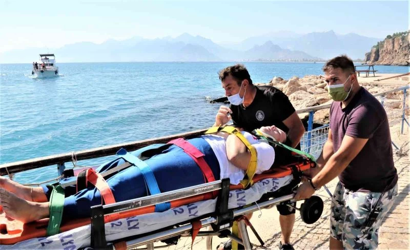 Antalya’nın Muratpaşa ilçesinde falezlerden düşen kadın, vücudunun çeşitli yerlerinden yaralandı. Deniz polisi tarafından karaya çıkarılan kadın, sağlık çalışanları tarafından hastaneye kaldırıldı.
