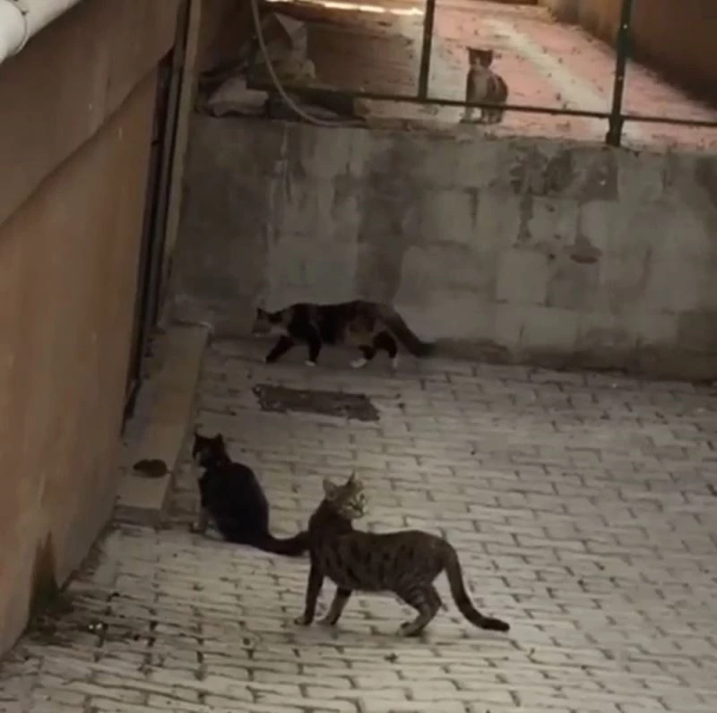 Antakya ilçesi Akasya Mahallesi’nde, 5 sokak kedisinin küçük bir fareyi kenara sıkıştırma çabaları amatör kameralara yansıdı. Gördükleri fareye saldırmaya çalışan 5 kedinin gücü, kedilerine tek tek kafa tutan fareye yetmedi. Farenin kaçarak kurtulmasıyla son bulan oyun sosyal medyada ilgiyle izlendi.
