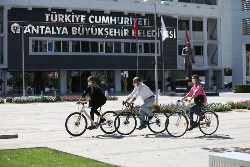 Her yıl 16-22 Eylül tarihlerinde dünyada kutlanan Avrupa Hareketlilik Haftası dolayısıyla Antalya Büyükşehir Belediyesi personeli de farkındalık oluşturmak ve bisiklet kullanımına teşvik etmek adına işe bisikletle geldi.