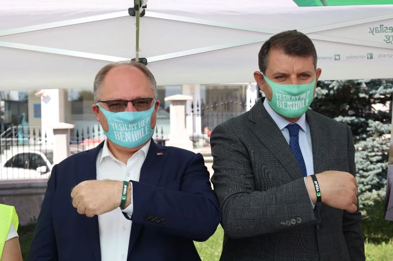 Vali Ayhan ve Başkan Bilgin konuşmalarının ardından kan bağışında bulundu.