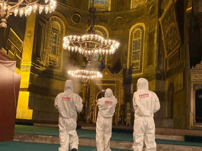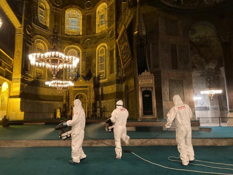 86 yıl sonra yeniden ibadete açılan Ayasofya-i Kebir Cami-i Şerifi’ne ziyaretler büyük ilgiyle devam ediyor. Fatih Belediyesi ise caminin içini sürekli dezenfekte ediyor. Aynı zamanda ziyaretçi akınına uğrayan caminin halıları da titizlikle temizleniyor. Korona virüs salgınına karşı camide her saat başı belediye ekipleri temas edilen ve temas edilmeyen her noktaya dezenfekte sıkıyor. Öte yandan Fatih Belediyesi tarafından yapılan dezenfekte çalışmasının her gün düzenli olarak devam edeceği öğrenildi.