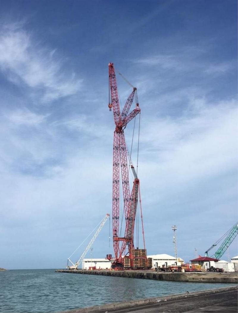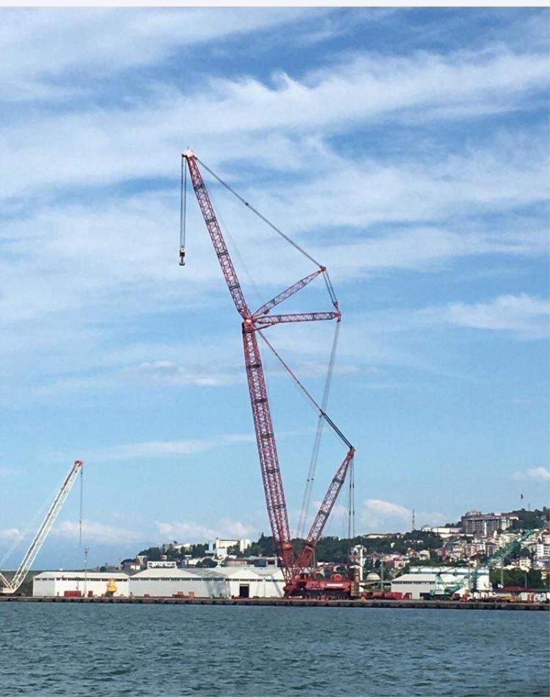 Geminin İstanbul Boğazı’ndan geçmesi için sökülen parçaları demirleyeceği Trabzon Limanında tekrar monte edilmesi için kullanılacak olan 165 metre yükseklikteki vinç 25 günde hazır hale getirildi.