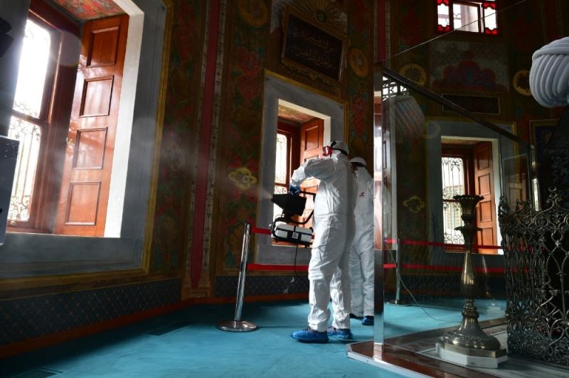 İstanbul’un fethinin 567. yılı kutlamaları öncesinde Fatih Sultan Mehmed’in türbesi Fatih Belediyesi ekiplerince dezenfekte edildi.