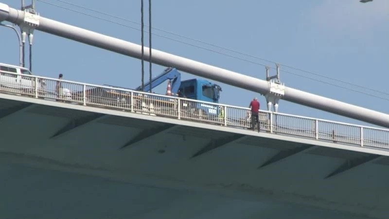 Fatih Sultan Mehmet Köprüsü’nde (FSM) korkuluklara çıkan erkek bir şahıs intihar girişiminde bulundu. Trafikte yoğunluk oluştuğu olayda, şahıs yaklaşık 2 saat süren çalışmalar sonucunda polis ekipleri tarafından ikna edilerek gözaltına alındı.