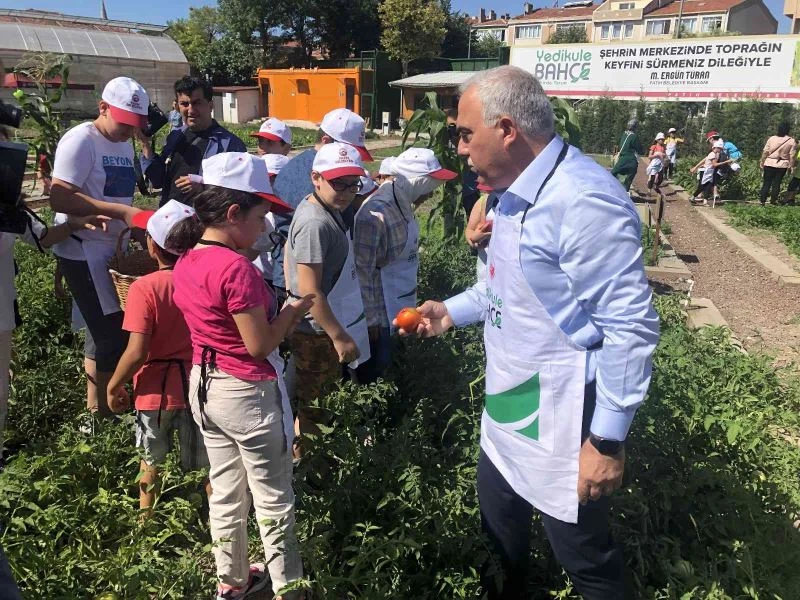 Yedikule Bahçesi’nin 2 yıldır faaliyette olduğunu dile getiren Fatih Belediye Başkanı M. Ergün Turan, "Bizim Yedikule Bahçe’mizde okullara ait 35 tane küçük bahçemiz var. Bu bahçeler vesilesiyle çocuklar toprakla tanışıyor. Sebze meyve nerede yetişir bilmeden yetişiyorlar. Yedikule Bahçemiz 2 yıldır faaliyette. Burası gerçekten 35 ilköğretim okulundan binlerce öğrencimiz burayı gelip kullanıyorlar. Hem ekim aşamasında hem de hasat aşamasında bulunuyorlar. Bugün de hasat günü çocuklarımızla hasat yaptık. Kendilerinin topladıkları meyve sebzelerden biraz evlerine götürecekler. Umut ediyoruz ki sofraya gelen ürünlerin bir emek olduğu hem de nasıl yetiştiğiyle alakalı bir bilinç oluşturma açısından da kıymetli buluyoruz" ifadelerini kullandı.