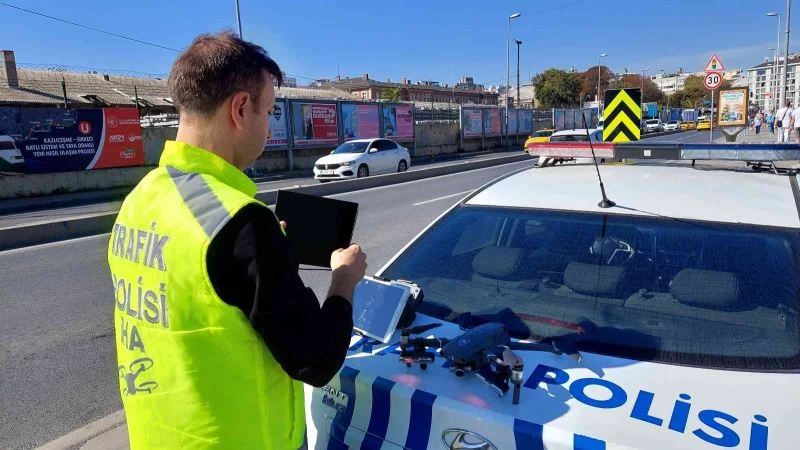 Fatih’te polis ekipleri dron destekli trafik denetimi gerçekleştirdi. Denetimde kasksız motor kullanan kişiye 196 TL para cezası kesildi.
