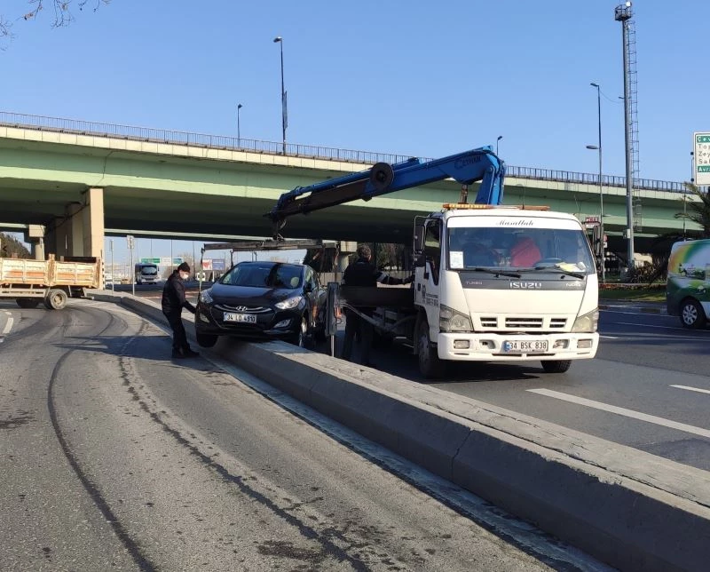 Fatih’te bir araç kontrolden çıkarak refüjün üzerine çıktı. Kısıtlama gününde meydana gelen ilginç kaza görenleri hayrete düşürdü.