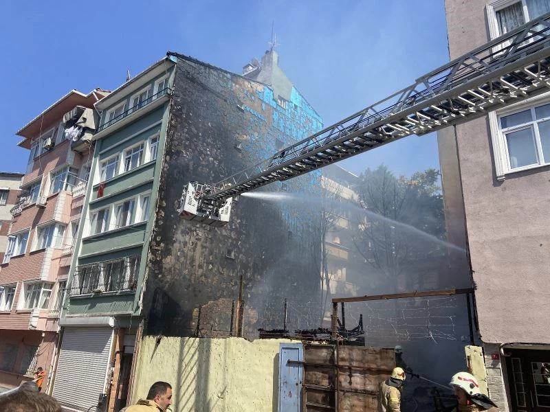Fatih’te hurdalık olarak kullanılan alandaki pazar tahtaları nedeniyle çıkan yangın kısa sürede binalara sıçradı. Yangının sıçradığı 3 bina drone ile havadan görüntülenirken, yükselen durmanlar kilometrelerce uzaktan görüldü.