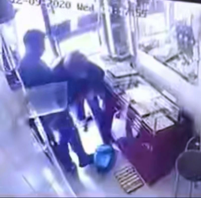 Kameralara yansıyan görüntülerde maskeli ve silahlı soyguncuların aniden dükkana girerek vitrini düzenleyen çalışana saldırdıkları görülüyor. Bir anda neye uğradığını şaşıran çalışan, saldırganlara karşılık vermeye çalışıyor. Kuyumcuya giren 2 soyguncu bir süre darp ettikleri çalışanı etkisiz hale getiriyor. Soygunculardan biri çalışanın hareket etmesini engellemek için başında beklerken diğer soyguncunun vitrindeki altınları hızla topladığı görüldü. Daha sonra içeri giren 3 soyguncunun altınları çantaya doldurdukları görüldü.