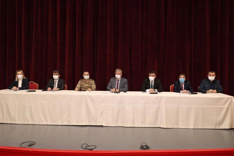 Belediye Kültür Sarayı’nda düzenlenen toplantı, Kaymakam Ömer Lütfi Yaran başkanlığında gerçekleşti. Toplantıda, pandemi sürecinde ilçede yürütülen çalışmalar değerlendirilerek, salgının yayılmasını engellemek için alınan tedbirler gözden geçirildi.