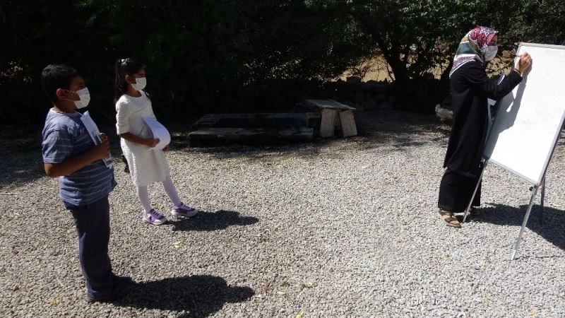 Tabanlı Mahallesi İlkokulu Öğretmeni Gamze Arslan ise 3 yıldır mahallede görev yaptığını ve 18 öğrencisi bulunduğunu belirterek, “Uzaktan eğitim çoğu yerde yararlıdır. Bizim okulumuzda da internet var, ancak evlerde internet olmadığı için zor oluyor. Milli Eğitim Müdürümüzle yaptığımız görüşme sonrası ödevleri hazırlayarak kapı kapı dağıtıyordum. Bunu yaparken şimdi ders tahtasıyla birlikte kapı kapı dolaşarak ders anlatmaya başladım. Ertesi gün tekrar öğrencilerimizin ödevlerini kontrol edip derslerini anlattıktan sonra yeni fotokopilerini teslim ediyorum. İlk başta fotokopileri dağıttığımda öğrencilerin konuyu kavrayamadıklarını fark ettim. Tahtada ders vermeye başladıktan sonra öğrencilerin daha iyi anladığını fark ettim. Bu uygulamanın çok iyi olduğunu düşünüyorum. Velilerimiz de bize gereken desteği veriyor. Aynı zamanda telefonda da öğrencilerimizin eğitimine destek veriyorum” ifadelerini kullandı.