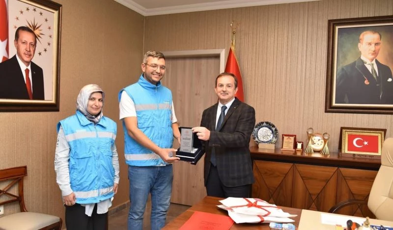 Manisa Gördes Devlet Hastanesi Evde Sağlık Hizmetlerinde görevli Hemşire Fatma Yamaç Köni ve Hemşire Saffet Karaca, özverili hizmet sunumlarından dolayı plakete layık görüldü.
