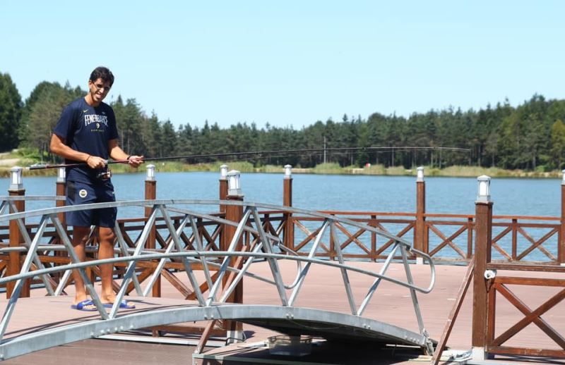 DÜZCE (İHA) – Fenerbahçe Beko Erkek Basketbol Takımı yeni sezon hazırlıkları kapsamında Düzce’nin Kaynaşlı ilçesinde çalışmalarını sürdürürken, takımın 27 yaşındaki oyuncusu Ahmet Düverioğlu Topuk göletinde balık tutarak stres attı.