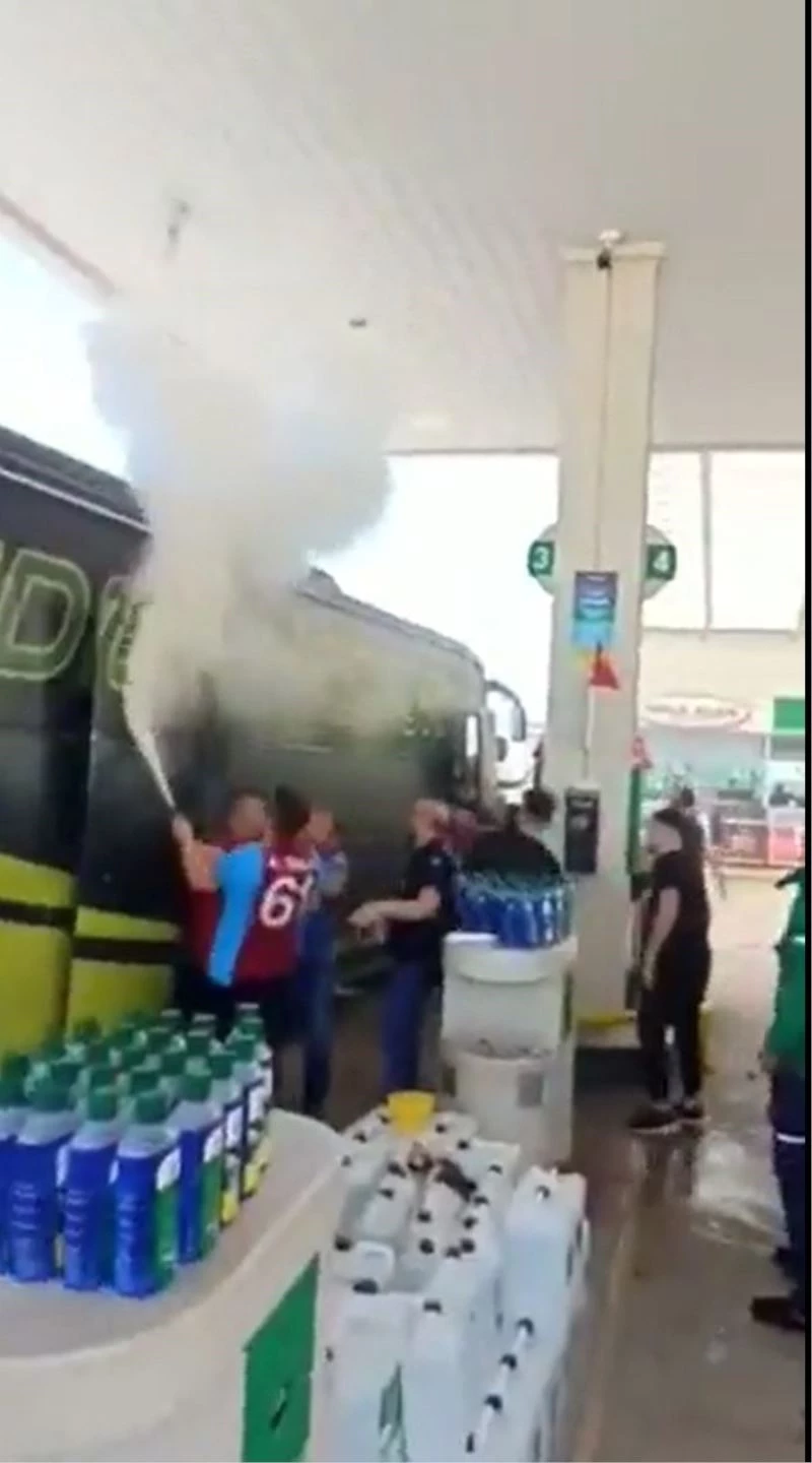 Yalova’da bir akaryakıt istasyonunda İstanbul’da oynanacak olan Trabzonspor-Altay maçına giden bordo-mavili taraftarlar, Fenerbahçe taraftarlarını taşıyan otobüse saldırdı.