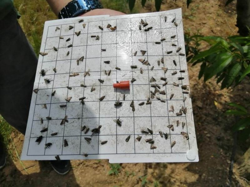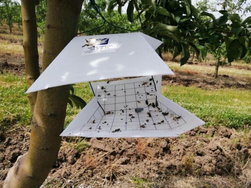 Kırklareli’nin Babaeski ilçesinde meyve bahçelerinde kurulan feromon tuzakları, Tarım ve Orman Müdürlüğü mühendisleri tarafından tek tek incelendi.