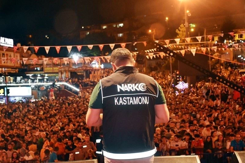 Kastamonu Emniyeti Narkotik Şubede Müdürlüğü ekipleri, Tosya ilçesinde gerçekleştirilen 23.Tosya Kültür ve Pirinç Festivalinde, konser öncesi sahneye çıkarak vatandaşları uyuşturucu ile mücadele konusunda bilgilendirdi. Sahneye çıkarak alanı dolduran binlerce vatandaşa önemli bilgiler aktaran polis memuru, "Uyuşturucu toplumun ortak bir sorunu ve sizlerin desteğini çok önemsiyoruz. İçişleri bakanlığı tarafından aktive edilen ’Uyuma’ uygulamasını telefonlarınıza indirmenizi rica ediyoruz. Görmüş veya şahit olmuş olduğunuz uyuşturucu olayını bu uygulama ile bizlere bildirmeniniz rica ediyoruz. Öncelikle vatandaşımız uyuşturucu olayına şahit oldukları zaman çok tedirgin oluyor. Sizler bu uygulama sayesinde bizlere yardımcı olunuz. Bu sadece Emniyet Müdürlüğü veya jandarmanın tek başına yapabileceği bir mücadele değil. Herkesin elini taşın altına koyması gerekir. Kastamonu İl Emniyet Müdürlüğü Narkotik Şube Müdürlüğü olarak il ve ilçelerimizde sürekli operasyonlar yaparak suç ve suçlularla mücadele ediyoruz. İçişleri Bakanımız sayın Süleyman Soylu tarafından faaliyete geçirilen ’En iyi Narkotik Polisi Anne’ faaliyeti ile annelerimizin bu konudaki duyarlığı ön plana çıkartıyoruz. Kastamonu Emniyet Müdürlüğü olarak uyuşturucuya ’hayır’ diyebilen bir genç ve aile ve toplum inşa etmek istiyoruz. Tüm vatandaşlarımıza Narkotik Şube Müdürlüğümüzün kapısının açık olduğunu belirtmek istiyoruz. Son olarak bizlere bu imkanı sunan Tosya Belediye Başkanı sayın Volkan Kavaklıgil’e Narkotik Şube Müdürlüğü olarak teşekkür ediyoruz’’ dedi.