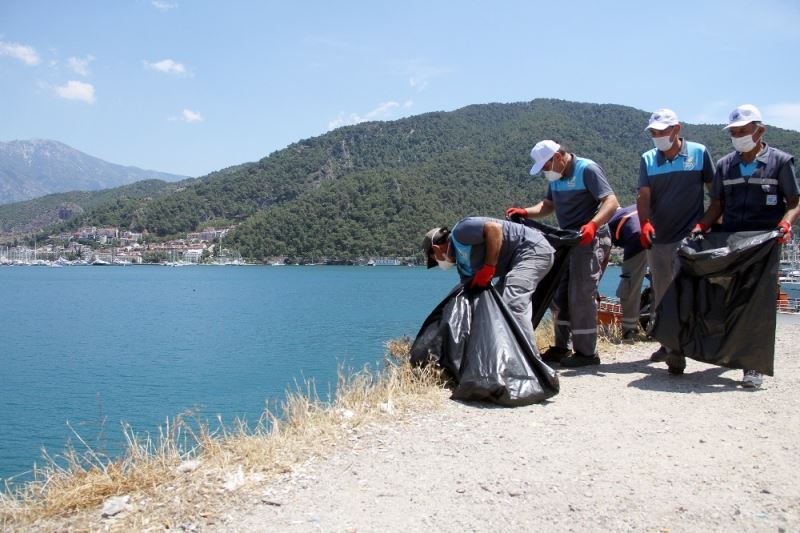 Fethiye Belediyesi temizlik ekipleri, ‘Dünya Çevre Günü’ nedeniyle ilçe genelinde yapacağı temizlik çalışmalarına bu bölgeden başladı. 50 temizlik personeli bölgeye gelerek atılan çöpleri topladı. 3 kilometrelik kıyı şeridinde yapılan temizlikte bir kamyonet dolusu çöp toplandı.