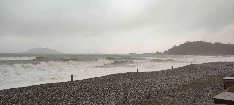 Muğla’nın Fethiye ilçesinde rüzgarın hızı saatte 80 kilometreye ulaşırken, sahilde dalgalar iki metreye ulaştı.