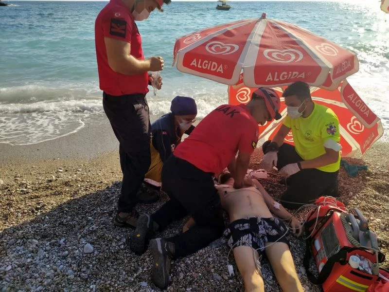 Edinilen bilgiye göre, arkadaşlarıyla Faralya Mahallesi’ndeki Kabak Koyu’na giden Doruk Özkaya (27) kayalık aladan denize düştü. Arkadaşlarının 112 Acil Çağrı Merkezi’nden yardım istemesi üzerine bölgeye sahil güvenlik botuyla Jandarma Arama Kurtarma (JAK) timi ile sağlık ekipleri sevk edildi. Arkadaşları tarafından kıyıya çıkarılan Özkaya’ya ekipleri olay yerinde ilk müdahaleyi yaptı. Daha sonra bota alınan Özkaya, Ölüdeniz Mahallesi’nde bekleyen ambulansa ulaştırıldı.