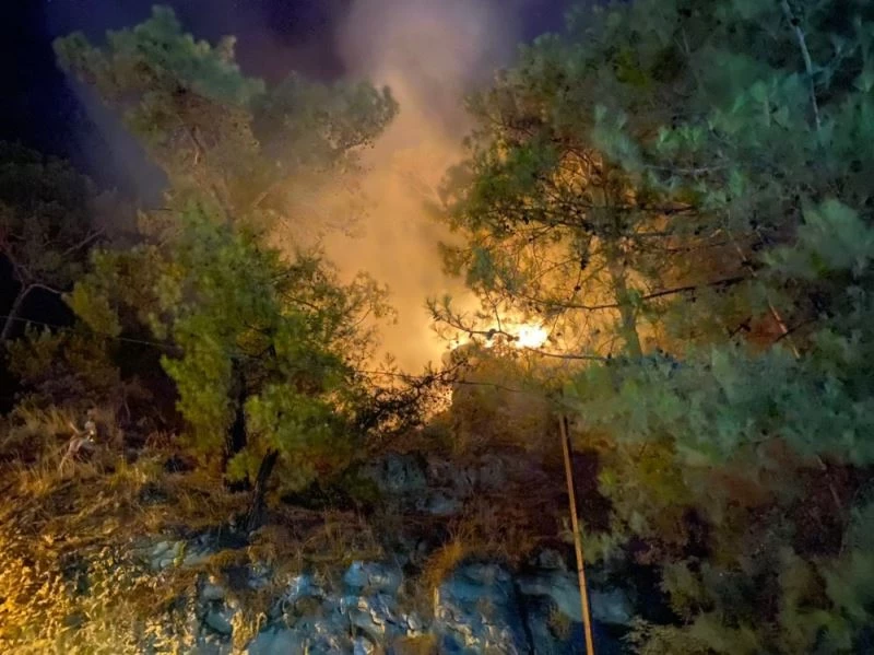 Muğla’nın Fethiye ilçesinde ormanlık alanda yangın çıktı. Havanın karanlık olması nedeniyle sadece karadan müdahale edilebilen yangını söndürme çalışmaları sürüyor.