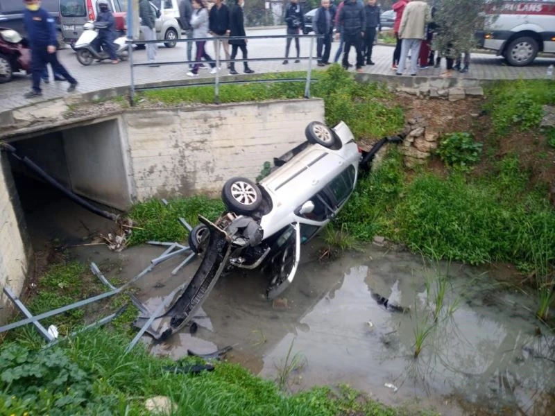 Fethiye’de otomobil su kanalına devrildi: 2 yaralı