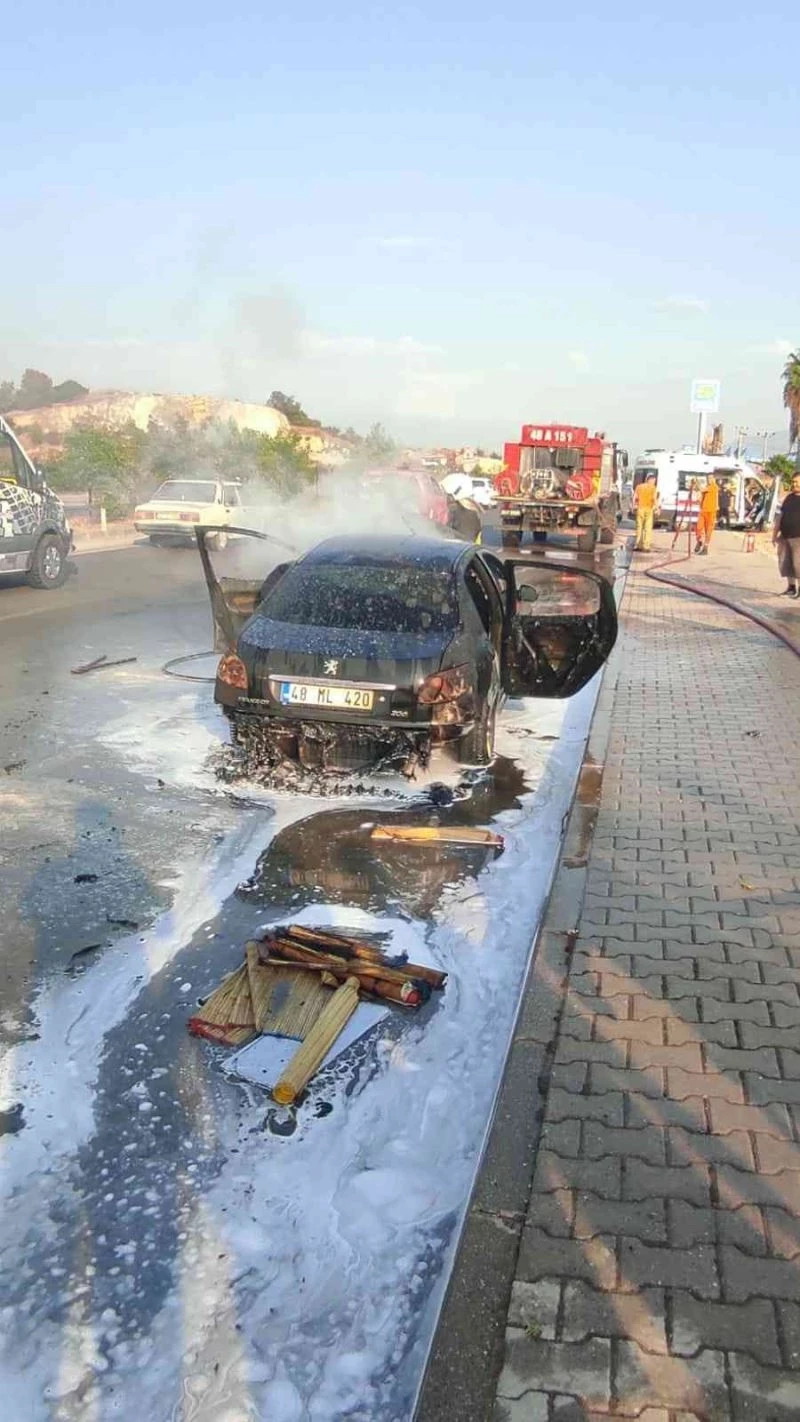 Fethiye’de seyir halindeki otomobil alev alev yandı
