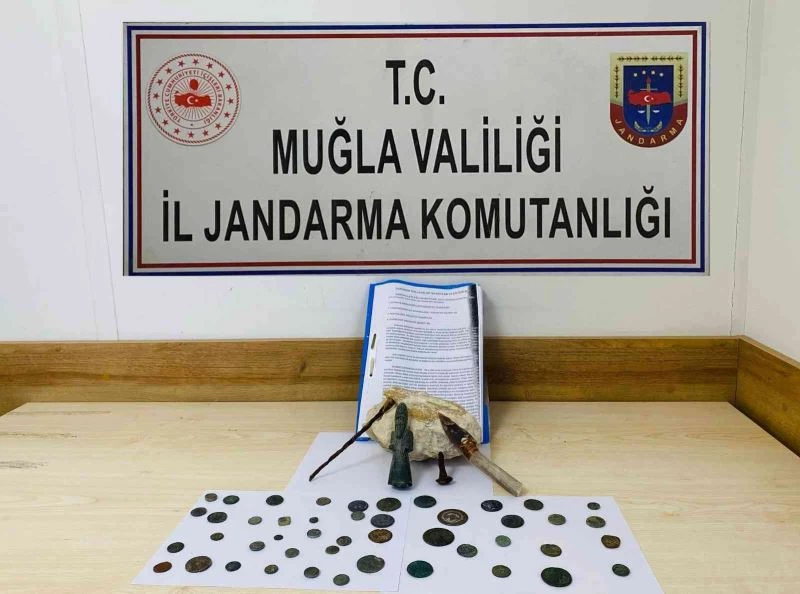 Edinilen bilgiye göre, Muğla İl Jandarma Komutanlığınca yapılan istihbari çalışmalar sonucu, Fethiye Çatalarık Mahallesinde ikamet eden C.K. isimli şahsın evinde tarihi eser bulundurduğu bilgisi alındı. Bahse konu adreste KOM Şube Müdürlüğü ve Fethiye İlçe Jandarma Komutanlığı ekipleri tarafından arama yapıldı. Yapılan aramada; farklı tarihi dönemlere ait olduğu değerlendirilen ve farklı madenlerden imal edilmiş 46 adet sikke, 1 adet mızrak ucu, 1 adet yengeç fosili, 1 adet biblo ve 2 adet çivi olmak üzere toplam 51 parça tarihi eser ele geçirildi.