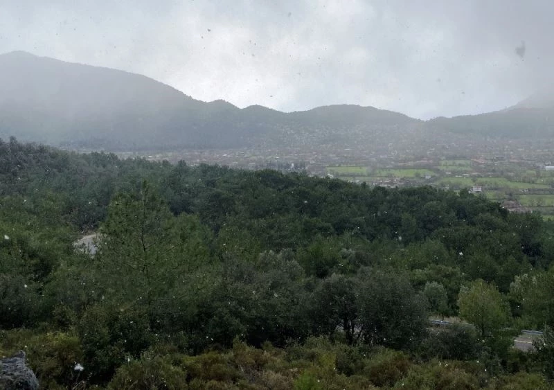 Muğla’nın Fethiye ilçesinde öğleden sonra kısa süreli yaşanan kar yağışı, vatandaşları şaşırttı.
