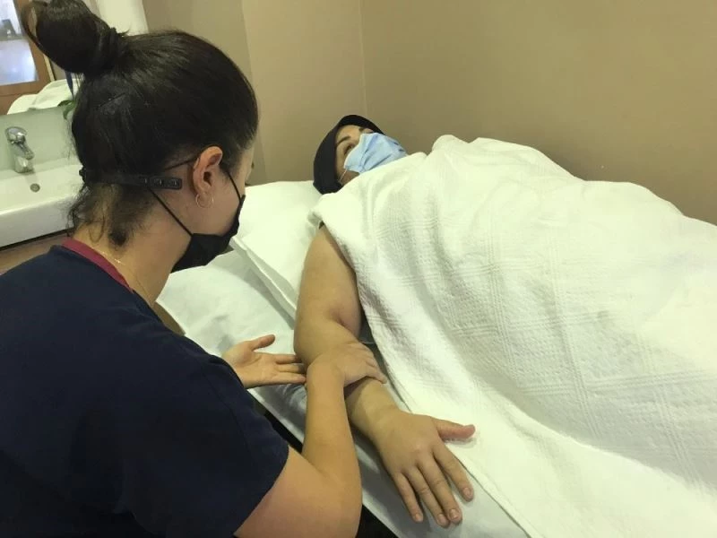 Ameliyat sonrasındaki tedavi sürecinde lenfödeme yakalanan ve bir süredir tedavi gören Filiz Kılıç, erken tanının çok önemli olduğunu söyledi. Hastalığın görüldüğü kolunun bir anda şişmeye başladığını ifade eden Kılıç, “9 ay önce rahatsızlandım ve ameliyat oldum. Ondan sonra kemoterapi ve ışın tedavisi gördüm. Işın tedavisi bitmeden 1 hafta önce kolum şişmeye başladı. Bu yüzden fizik tedaviye geldim. Şimdilik güzel sonuç alıyoruz. Belirti gösteren hastaların erken teşhis için bir an önce doktora gitmesi gerekiyor. Ben biraz geç kaldım ama başkalarının erken gitmesini tavsiye ediyorum. Uymam gereken şeyler var. Ağır kaldırmamam ve kolumu yormamam gerekiyor. Ömür boyu bu kısıtlamalarım var” ifadelerini kullandı.