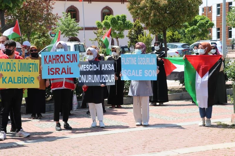 Basın açıklaması sonrası, İlçe Müftüsü Ferhat Koçak tarafından dua edildi. Yapılan duadan sonra “Kahrolsun İsrail, Kahrolsun Amerika” şeklinde slogan attılar.