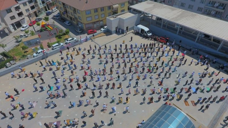 Gemlik ilçesinde Cuma namazı sonrası vatandaşlar Gazze şehitleri için gıyabi cenaze namazı kıldı. Sosyal mesafe kuralarına uygun saf tutan vatandaşların kıldığı gıyabi cenaze namazı drone ile görüntülendi.