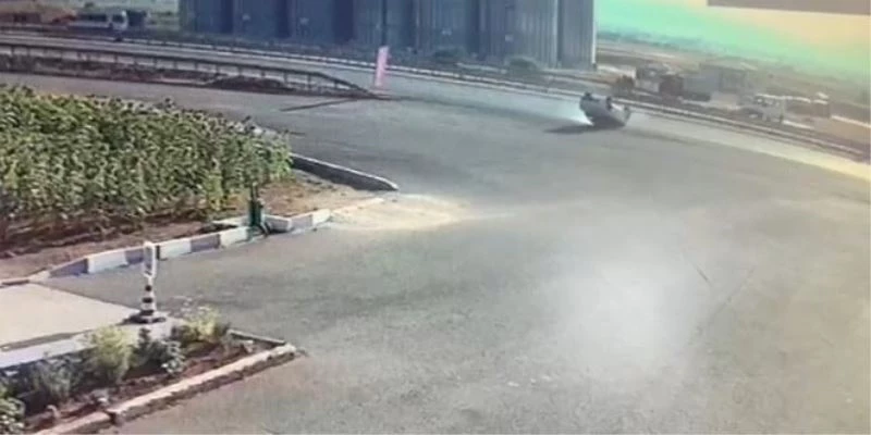 Film setlerindeki görüntüleri aratmayan kaza güvenlik kamerasında
