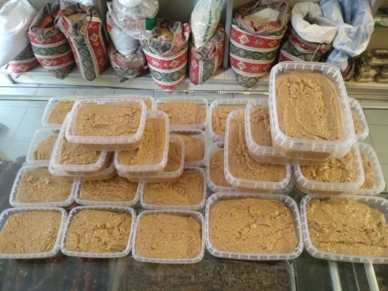 Giresun’un fındık üretimi yapılmayan ilçelerinden birisi olan Şebinkarahisar’da çifte kavrulmuş Giresun kalite yağlı fındığından elde edilen dövme helvası geleneksel yöntemlerle havanda dibekle saatlerce dövülerek yapılıyor.