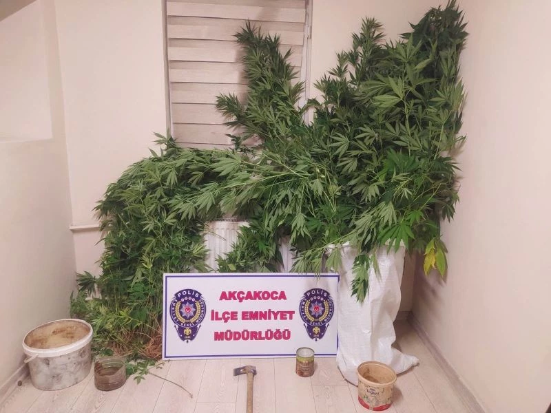 Akçakoca İl Emniyet Müdürlüğü ekipleri, Ayazlı Mahallesi’nde bulunan fındıklık alanında yaptığı aramalarda 171 adet Hint keneviri bitkisi ele geçirdi. Bitkiler muhafaza altına alınırken, şüpheli 1 şahıs hakkında "uyuşturucu madde imal ve ticareti, uyuşturucu madde murakabesi" hakkında adli işlem başlatıldı.