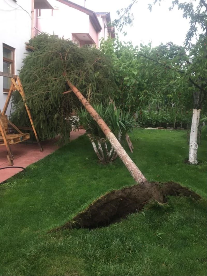 Çorum’un Osmancık ilçesinde etkili olan fırtına ağaçları yerinden sökerken, çatıları uçurdu.