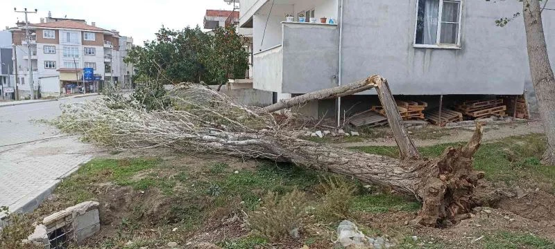 Balıkesir’in Edremit ilçesinde öğle saatlerinde etkili olmaya başlayan şiddetli poyraz nedeniyle ağaçlar yıkıldı, trafik tabelaları eğildi.