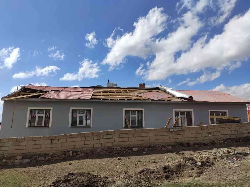 VAN – Van’ın Özalp ilçesinde etkili olan fırtına nedeniyle bir evin ve okulun çatısı uçtu.