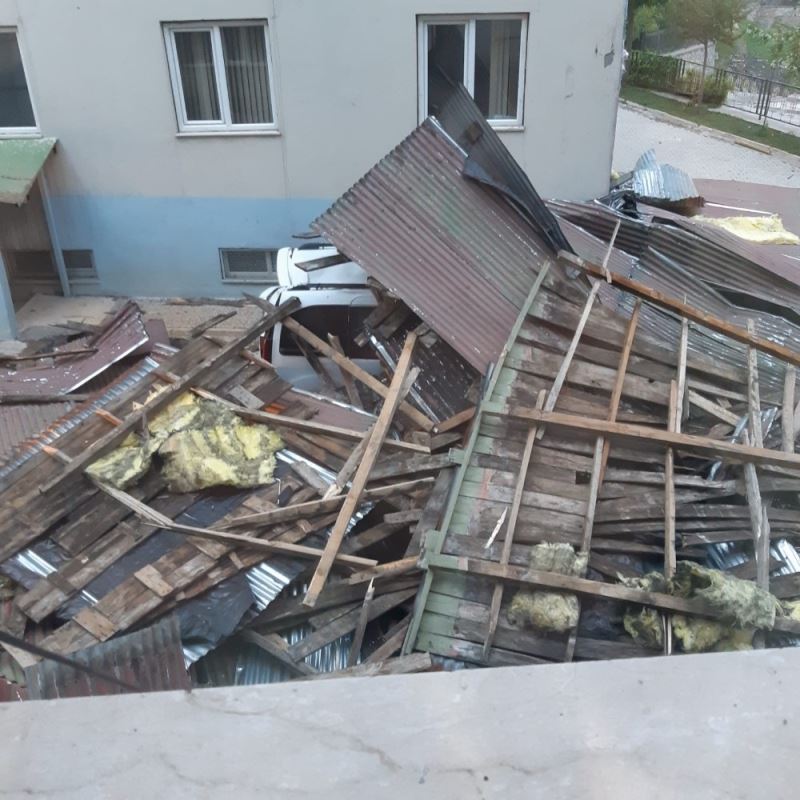 Binasının çatısı uçan Süleyman Kanat ve Remzi Tekin isimli vatandaşlar, gece boyunca devam eden fırtına nedeniyle çatılarının uçtuğunu ifade ederek yetkililerden yardım istedi.