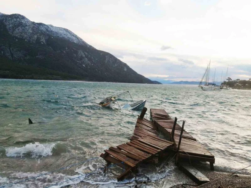 Muğla’da iki gündür devam eden kar yağışı kırsal bölgelerde ulaşımı aksatırken, denizlerde yaşanan fırtına ise tekneleri batırdı. Ahşap iskeleleri yerinden söktü.