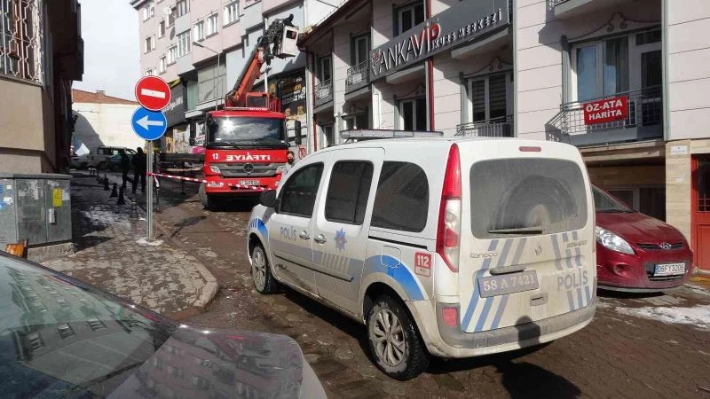 Sivas’ta şiddetli rüzgâr sonucu uçan baca park halindeki bir aracın üzerine düştü.
