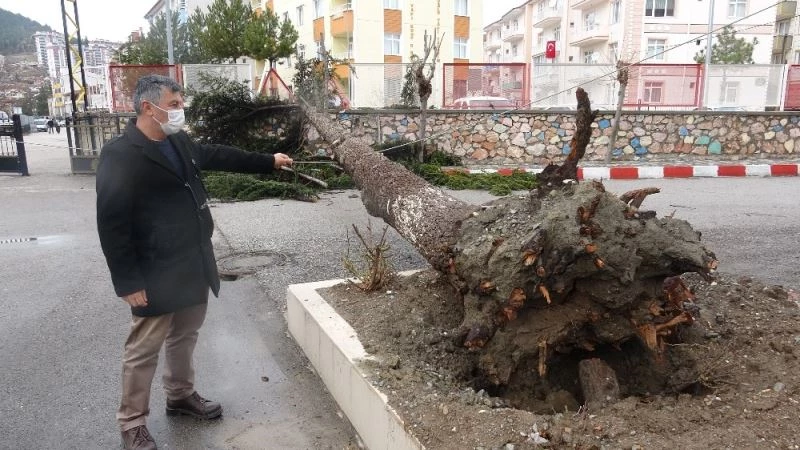 Okul çalışanlarından Ramazan Çabuk, yaklaşık 50 yıllık çamın fırtınaya dayanamayarak yıkıldığını kaydetti. Sert rüzgar nedeniyle çamın devrildiğini belirten Çabuk, “Rüzgar nedeni ile insan dışarı çıkmaya korkuyordu. Biranda çamın devrildiğini gördük. Şans eseri okul bahçesinde kimse yoktu. Küçük çaplı maddi hasarla atlattık” diye konuştu.