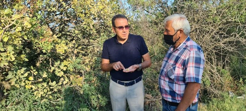 Prof. Dr. Açar, şunları söyledi: “Benim buraya getirdiğim aşı kalemleri vardı. Çerçiler Köyü Muhtarımız aşılamalar yaptırdı. Bazı aşılarda başarı var. Elimizde tutmuş aşılar var. Bizim ’Barak Yıldızı’ adını verdiğimiz erken olgunlaşan Gaziantep bölgesinde 15 Temmuzda olgunlaştı o çeşit. Biz burada 15-20 Ağustos’ta bu bölgede olgunlaşacağını öngörüyoruz o çeşidin. O çeşidi buraya getirdik, aşılar yapıldı. Bazı deneme alanlarında tuttu. Bu çeşitle ‘Barak Yıldızı’yla bu bölgede yeni aşılamalar yapılabilir. Bu mevcut ağaçlarda da çok güzel yeşil iç var. Ben bunu Şanlıurfa Bilecik’teki fıstık halinde bir esnafa gönderdim. Hocam bundan çok var mı diye sordu. Bunda çok güzel bir yeşillik var. Fıstığın yeşil olması sanayilik olarak çok çok önemli. Muazzam bir baklavalık, dondurmalık ve sanayilik bir fıstık görebiliyoruz. Bizim de öngörümüz buydu. Bir proje hazırlamıştık, öngörümüz oydu. Mevcutları biz bu dönemlerde hasat edelim, yeşil içli olarak piyasaya sunalım. Yeni aşılama yapacağımız yerlere de erken olgunlaşan çeşit aşılayarak Ağustos sonu, eylül başına doğru çerezlik olarak toplayıp bölge ekonomisine, buradaki kırsal kalkınmaya katkı verelim düşüncesiyle bir hazırlığımız olmuştu.”