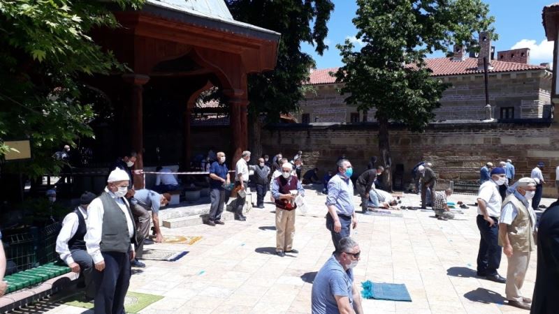 Din görevlileri tarafından camilerin avlusu ile belirlenen alanlarda işaretlemeler yaptı. Cemaat, fiziksel mesafe kuralına uygun olarak 1,5 metre aralıklarla saf tuttu.