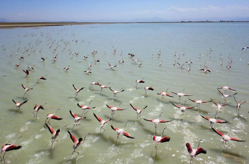 Her yıl belirli dönemlerde Van Gölü Havzası’ndaki sulak alanlara gelen flamingolar, son yıllarda Bitlis’in Adilcevaz ilçesine bağlı Arin Gölü’nde de yoğun bir şekilde konaklıyor.