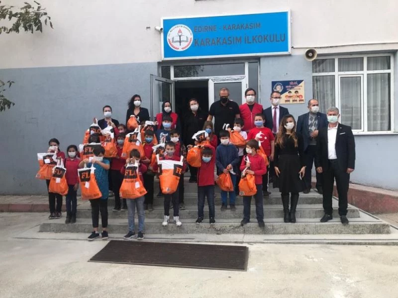 Türk Kizilay Edirne Subesinden yapilan yazili açiklamaya göre, FLO Magazacilik Genel Müdürü Tahir Bayraksoy, Türk Kizilay Edirne Sube Baskani Kadir Çakay, Il Milli Egitim Müdürü Önder Arpaci ve Il Milli Egitim Müdürlügü Sube Müdürü Ercan Aras Edirne'deki okullari ziyaret etti.