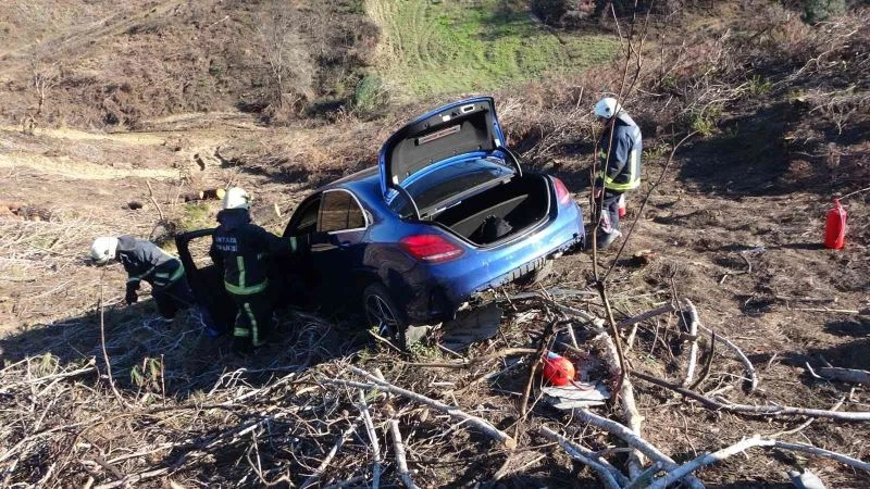 Antalya’nın Manavgat ilçesinde fotoğraf çekmek için orman yangınından etkilenen Ulukapı Bardaklar mevkiindeki kesim alanına gelen Rus uyruklu Türk vatandaş lüks otomobilinden dumanlar çıkmaya başlayınca aracını terk etti. Alkhazur Abukaev’in inmesinin ardından lüks otomobil, kesilen ağaçlar arasında 80-90 metre aşağıya inerek ağaç köklerine takılıp durabildi.
