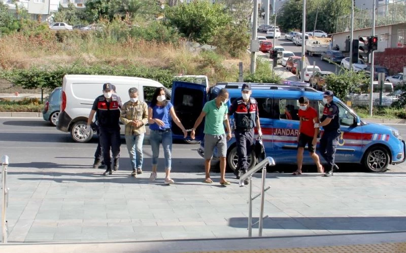 Hırsızlık yapılan bahçeye fotokapan cihazları yerleştiren ekipler, şüphelilerin yakalanması için çalışma başlattı. Bir süre sonra aynı bahçeye hırsızlık yapmaya gelen 1’i kadın 4 şüpheli fotokapana takıldı. Soruşturmayı derinleştiren ekipleri hırsızlık şüphelisinin Halil K.(35) eşi Pembe K. (29), Haşim I. (53) ve E. G. (17) olduğunu tespit etti. Tespit üzerine jandarma Gazipaşa ilçesindeki sahilde Pembe K., Haşim I.’yi piknik yaptığı sırada Halil K.’yi gizlendiği adresinde E. G.’yi ise yaya olarak gezdiği sırada yakalayarak gözaltına aldı.