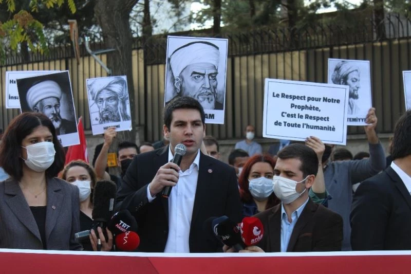 Öncü Gençlik Genel Başkanı Özgür Bursalı, yaptığı basın açıklamasında, “Burada hedef Sayın Cumhurbaşkanımızla birlikte Türkiye’dir. Emperyalist Batı’ya karşı direnen mazlum milletlerdir. İslam uygarlığına, Hz. Muhammed’e saldıranlar, insanlığa ve büyük medeniyet birikimine saldırmaktadır. Fransa Cumhurbaşkanı Macron, büyük Türk milletine ve İslam uygarlığına saldırıları sözde ’ifade özgürlüğü’ yalanlarıyla perdeliyor. Onların özgürlük anlayışı, Afrika’da ulusları acımasızca sömürme özgürlüğüdür. Libya’nın üzerine NATO bombaları yağdırma özgürlüğüdür. Doğu Akdeniz’de Türkiye’nin egemenliğine göz dikme özgürlüğüdür. İslam dünyasının kutsalı ve bütün insanlığın değeri olan Hz. Muhammed’i küstahça karalama özgürlüğüdür. Hiç kimse Türkiye’ye, Türkiye Cumhurbaşkanı’na ve İslam’a, Hz. Muhammed’e hakaret etme özgürlüğüne ve haddine sahip değildir. Buradan, Fransa Büyükelçiliği önünden Vatan Partisi Öncü Gençlik olarak meydan okuyoruz ve bu emperyalist ikiyüzlülüğü mahkum ediyoruz. Macron, Hz. Muhammed’in yalnız Müslümanların değil yedi iklimde nasıl gönüllerde olduğunu görmek istiyorsa Fransız bestecisi Debussy’ye, Beethoven’ın ’Atina Harabeleri’ adlı eserinde ’Büyük Peygamber Muhammed’ diye haykırışına kulak versin. Büyük Batı düşünürlerinin Hz. Muhammed’in kişiliğine duyduğu saygıyı öğrensin. Hz. Muhammed’e dil uzatmak, insanlığa ve medeniyete saygısızlıktır” diye konuştu.