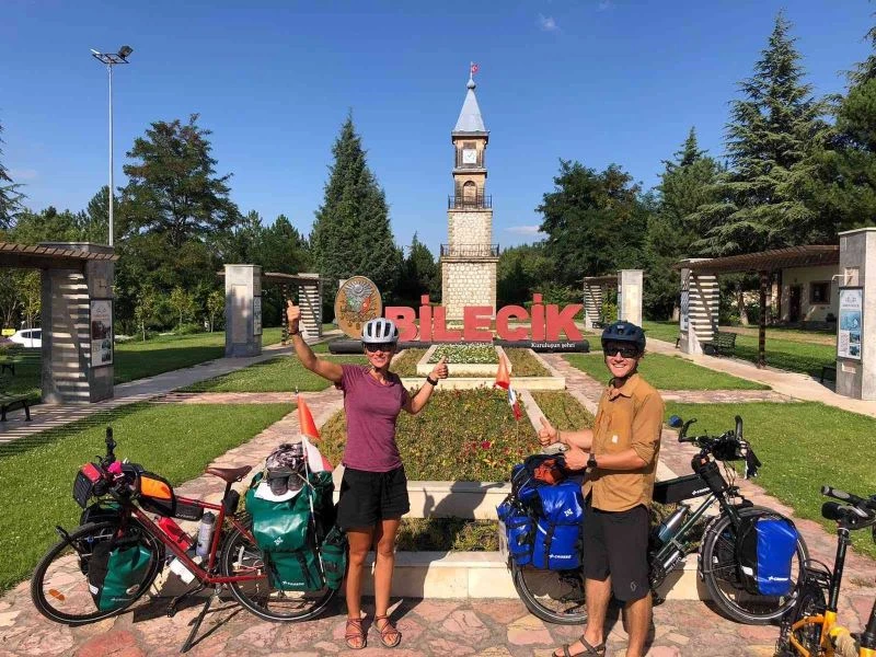 Fransa ve Polonya’dan bisikletleriyle yola çıkan turistler Bilecik’e vardı